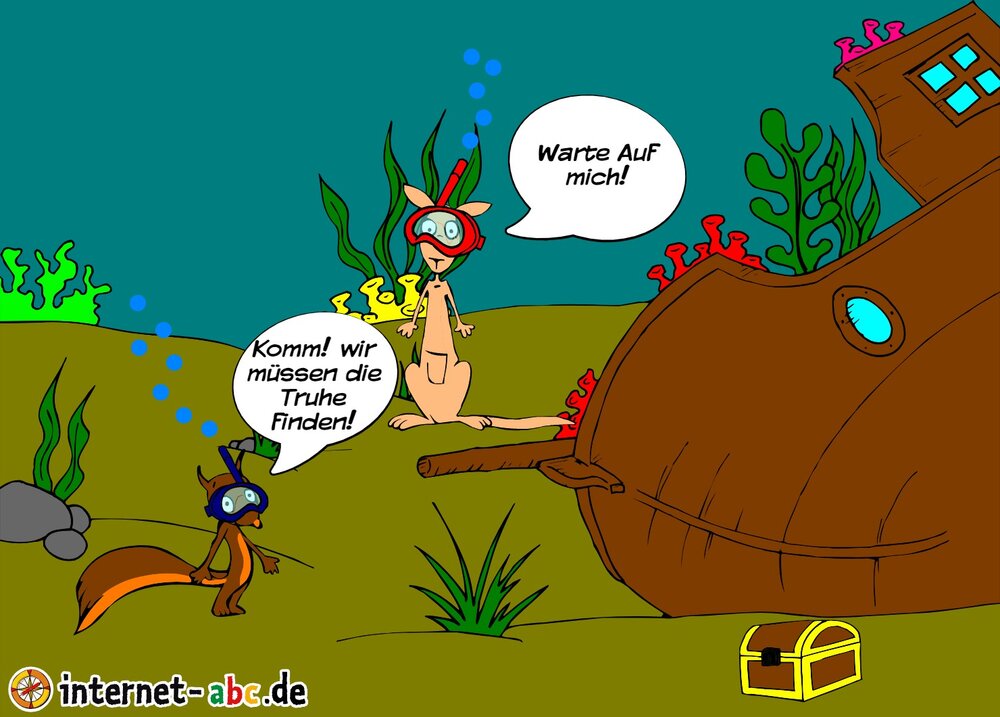 Die beiden Freunde haben beschlossen eine Schatztruhe zu suchen.
