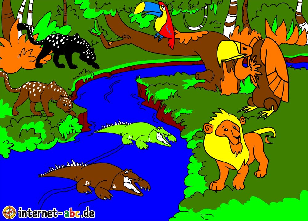 Nein Geschichte spielt in Urwald dass alle Tiere da trinken wollen