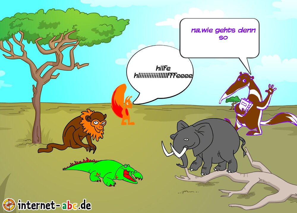 einal ging ein Eichhörnchen in die Savane dort traf es einen Ameisenbär das Eichhörnchen schrie HILFE und AAAAAAAAAAAAAAAAHHHH