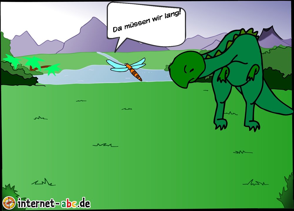 Es war ein mal ein Dinosaurier und der konnte nicht sehr gut sehen und eines Tages kam eine Libelle vorbei und sie sah dass der Dinosaurier Hilfe brauchte und fragte ihn ob sie ihn überall hin begleiten sollte.