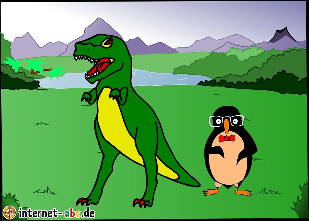 ein dino ist böse und der binguin wilden Dino fon seine wut befreien und er schafte es in fon seiner wut zu befreien