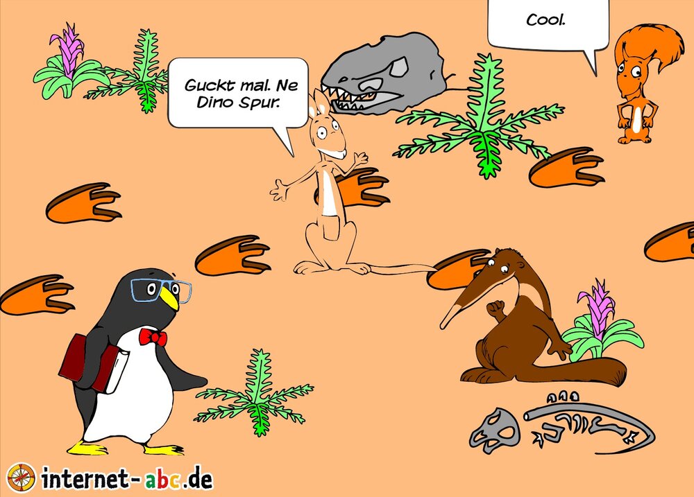 Die freunde sind in der Savanne , als Jumpi eine Dino Spur entdeckte.