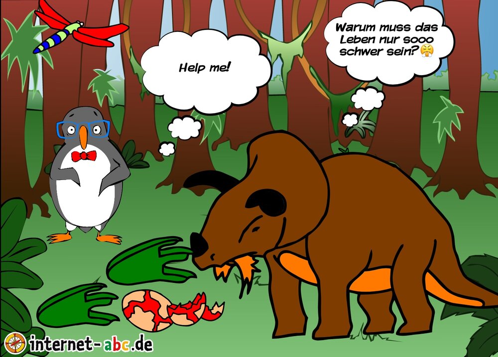 Wie ist Eddie nur dahin gekommen?Hoffentlich findet er einen Weg nach Hause.Aber die Dinomama versperrt den Weg!Armer Eddie!Da sah er einen anderen Weg nach Hause.Aber der Weg wird nicht sehr einfach zu durchqueren sein, aber Eddie schaft es noch rechtzeitig in die Zeitmaschine.Yeah!Als er Zuhause angekommen ist, sah er auf die Uhr:23:00 Uhr.Puh schon sooo spät!?Na dann Abis Bett!Gute Nacht!