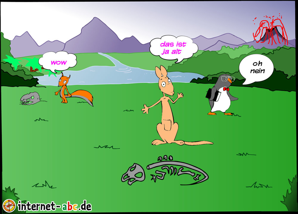jumpy und flitzi und eddie finden ein dinoskelett.