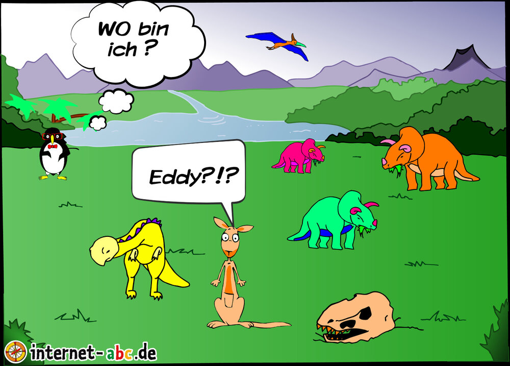 Eddy landet in der Zeit Jura er findet seinen Kumpel Jumpy . Die riesigen Tiere scheinen sie nicht zu beachten .Doch ........