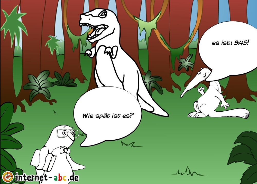 Eddi fragt: wie spät ist es? Percy antwortet: es ist :9:45!