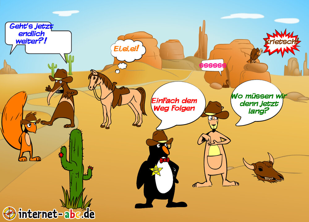 Sheriff Eddie und seine Freunde sind in der Wüste. Jumpy vergisst dauernd den Weg. Hoffentlich reicht das Wasser noch bis zum nächsten Dorf! Lucy, das Pferd hat auch keien Lust mehr.