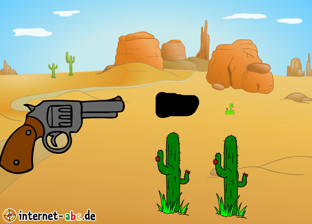 Große Pistole erschiesst kleine Schlange.