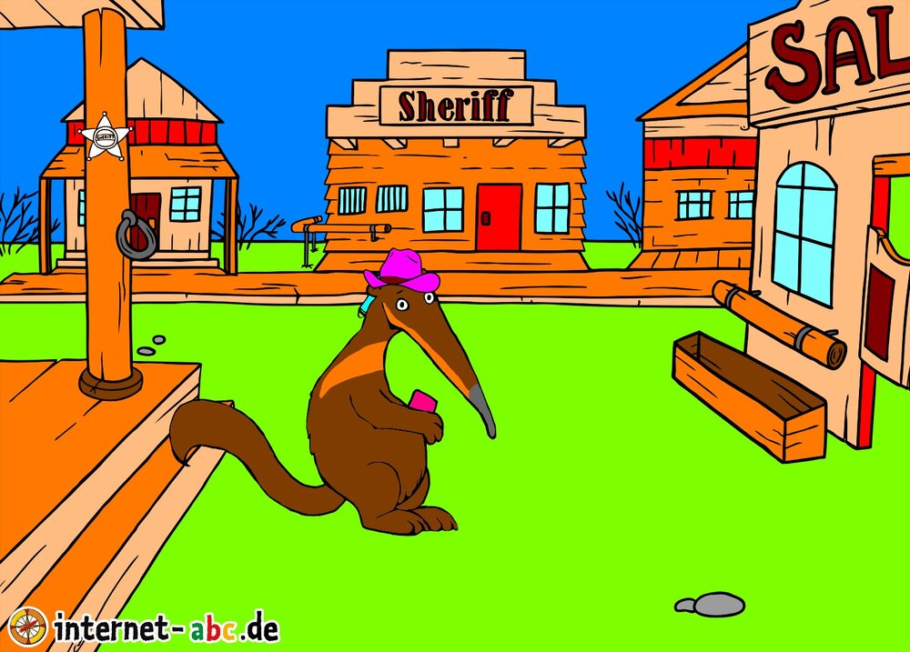 Der Ameisenbär ist in einem Westerndorf gelandet und begibt sich auf eine spannende Reise.
