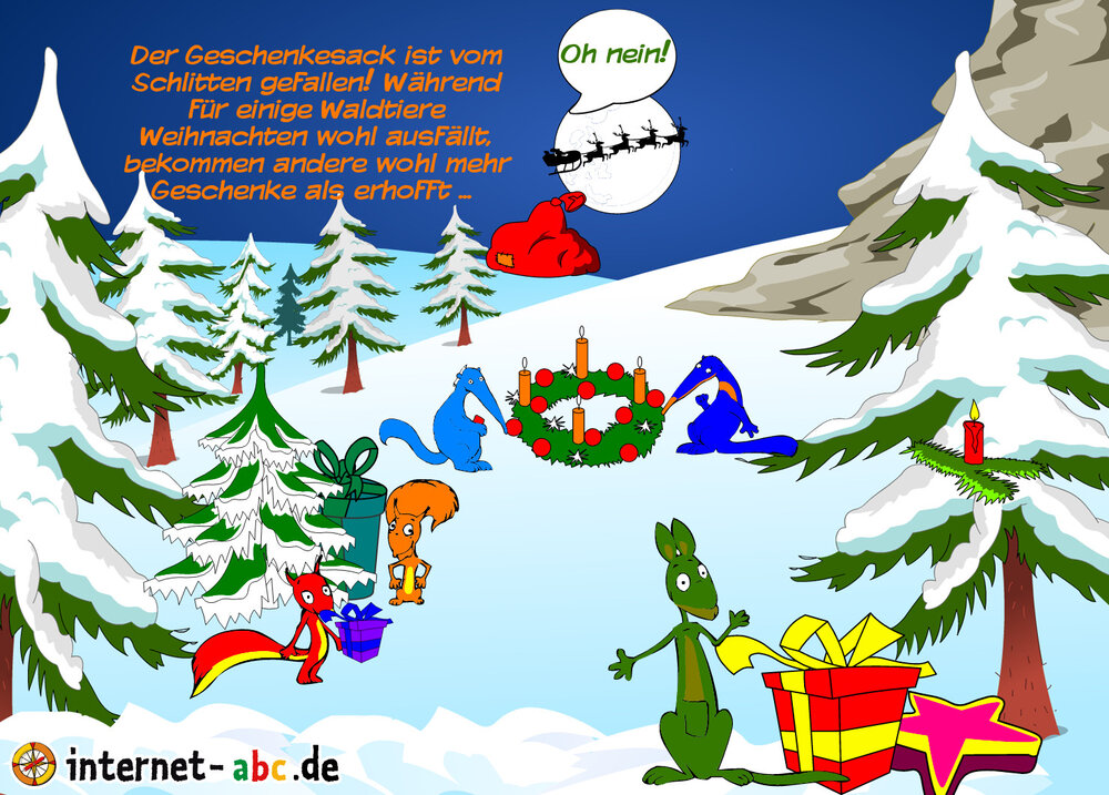 Der Geschenkesack ist vom Schlitten gefallen! Während für einige Waldtiere Weihnachten wohl ausfällt, bekommen andere mehr Geschenke als erhofft ...