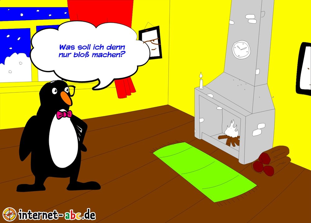 Eddi ist zu Hause und fragt sich was er machen soll,»Was soll ich denn nur bloß machen?«.