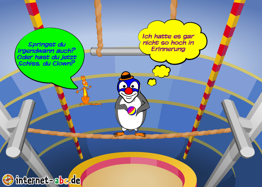 Hallo, könnt ihr es sehen? Der arme Eddie steckt hinter einer Clownsmaske und steht mit Höhenangst auf einem Seil in zwölf Meter Höhe - oh-oh! Sein Lehrer, Herr Jumpy, kann das von da unten - die Tribüne auf der er steht - natürlich nicht bemerken und fängt an, ungeduldig zu werden und zu meckern. Runter steigen kann Eddie nicht, denn in ein paar Minuten kommen seine Freunde und Verwandte, die er eingeladen hat, mal seinen Zwischenstand im Training zu beobachten. Da kann er ihnen doch nicht beichten, dass alles schief läuft und er seine Höhenangst noch immer nicht überwunden hat! Was soll er nur tun?