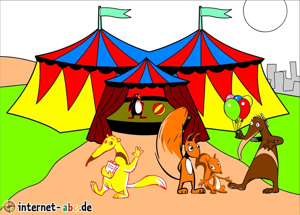 Eichhörnchen Flizzy hat im Internet-abc frei bekommenundd geht mit seiner großen Schwester in den Cicus