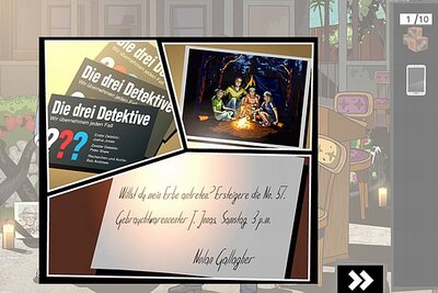Um weiterzukommen, musst du nach und nach alle Rätsel lösen. Die drei ??? können zum Beispiel den Zeitungsartikel erst finden, nachdem sie bestimmte Tätigkeiten erledigt haben. Und ab und zu gibt es Such- und Minispiele.
