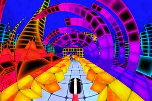 Bei "Dub Dash" rollt ein Rad zu lauter Musik über eine Strecke mit Hindernissen. Du musst geschickt Hindernissen ausweichen und Noten einsammeln. Sobald aber das Rad an einem der Hindernisse mit einem Puff zerschellt, ist die Musik aus und das Spiel beginnt von vorn.