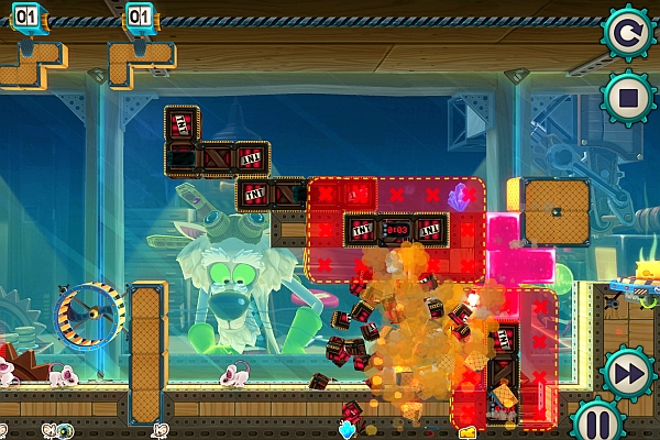 Sehr raffiniert ist das Anhalten der Zeit, um ohne Mäusegewusel beim Lösen der Rätsel voranzukommen. Wenn du willst, kannst du den Level-Editor ausprobieren, um ganz eigene Herausforderungen zu schaffen.