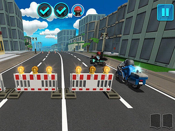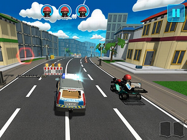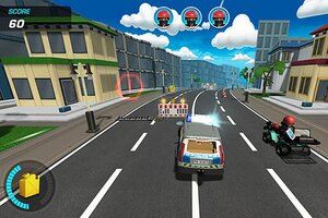 Du kannst zwischen drei Fahrzeugen wählen. Die Jagd auf den Ganoven wird immer schneller. Dabei musst du anderen Fahrzeugen ausweichen, die dir entgegenkommen.