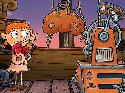 Elfina und Olfred und der kleine Ubo fliegen mit ihrem Flugschiff in den Urlaub. Eben noch ein Brot geschmiert und den Koffer gepackt. Und dann geht es ans Meer. Sie finden dort eine Flaschenpost mit einer Karte. Jetzt müssen sie den Schatzsucher Leo retten und den Schatz bergen.