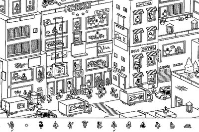 Du kannst einen Bauernhof, einen Campingplatz oder eine Stadt betrachten. Und wenn du durch die Lupe schaust, siehst du alles ganz genau. Du findest zappelnde, tanzende oder laufende Menschen, fahrende Autos, Busse oder Transporter.