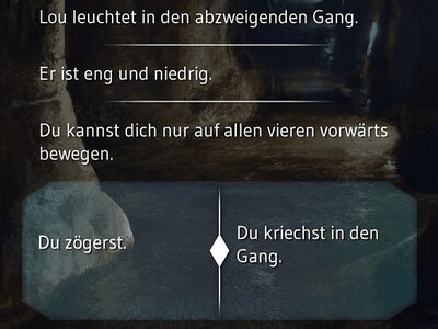 Aber was erwartet euch dort? Das musst du herausfinden, indem du die Sätze liest, die eingeblendet werden. Du kannst dann auswählen, wie die Geschichte weitergehen soll. Im Hintergrund gibt es dazu unheimliche Musik.