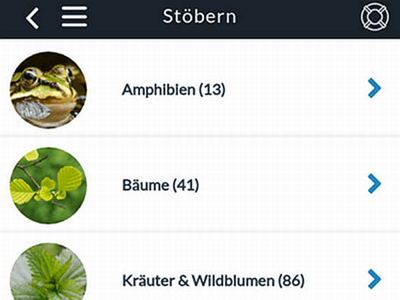 Wenn du zum Beispiel einen kleinen Frosch findest, dann startest du einfach die App. Die stellt dir dann Fragen: "Ist ein Schwanz vorhanden?", "Ist kein Schwanz vorhanden?" Und schon hast du elf mögliche Ergebnisse.
