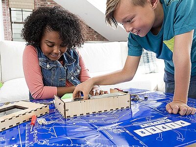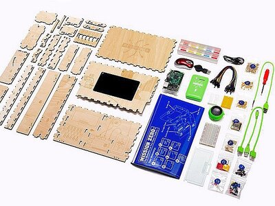 Wenn du die Verpackung öffnest, riecht alles nach Holz. Das kommt von dem hölzernen Gehäuse, das du aufbauen sollst. Danach müssen die Kabel richtig eingesteckt und alles mit dem Monitor verbunden werden. Wenn der leuchtet und dein Computer funktioniert, kannst du mit dem Programmieren loslegen.