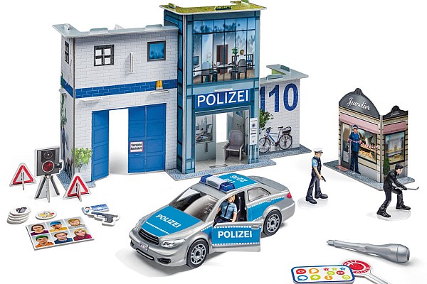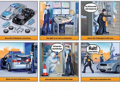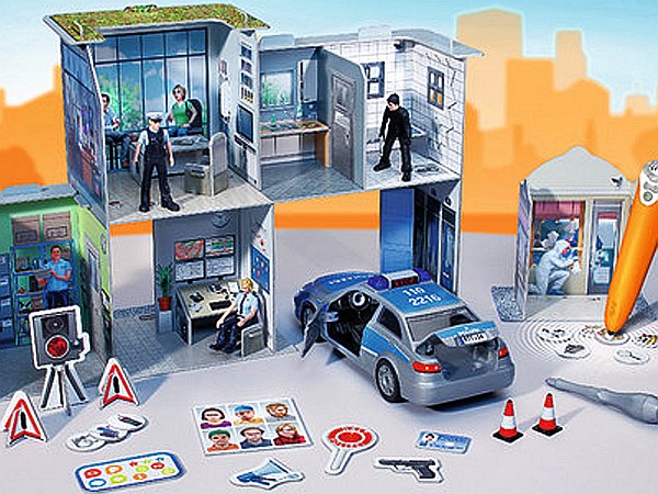 Zuerst musst du natürlich die Wache und das Polizeiauto zusammenbauen. Danach kannst du alles mit dem tiptoi-Stift erkunden. Überall gibt es etwas zu finden. Und wenn das Telefon klingelt, sollest du besser rangehen!