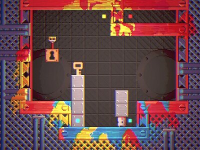 Du sollst die Eimer zum Schlüssel bringen. Dann sind sie sicher im Ziel. Ein Eimer darf aber nicht auf eine Stachelfalle fallen. Dann geht er nämlich kaputt und hinterlässt einen Farbfleck.