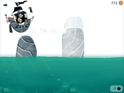 Dein Piratenschiff kann sogar über Felsen hüpfen. Sind die Felsen zu hoch? Dann musst du sie mit Kanonenkugeln sprengen. Weiter geht die verrückte Seereise, auf der die Piraten mit Kokosnüssen schleudern.