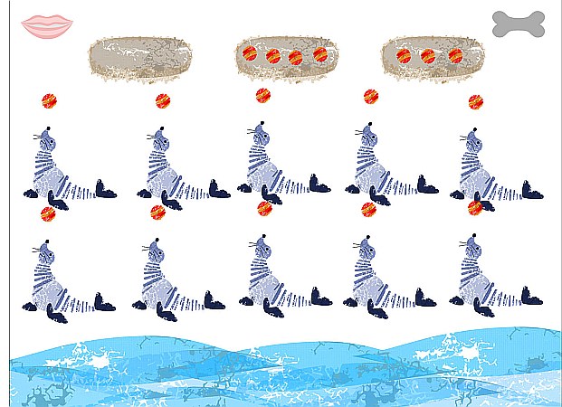 Der Hund ist niedlich und heißt "Lazuli". Deine Aufgaben sind in einem riesigen Knochen versteckt. Den bekommt der kleine Lazuli als Leckerli, wenn du alle Aufgaben gelöst hast.