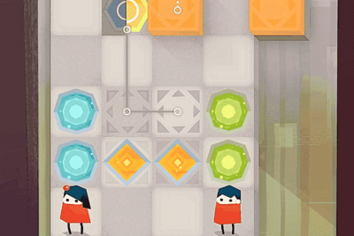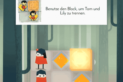 Hier verschiebst du auch Quadrate. Dazu kommen aber noch die unzertrennlichen Zwillinge Tom und Lily, die auf ihnen rumlaufen. Deine Aufgabe ist es, für die beiden einen Weg zum Ziel zu finden.
