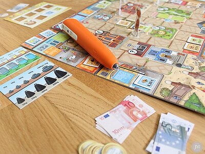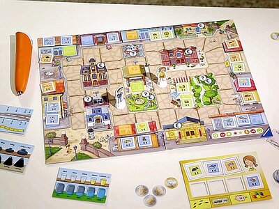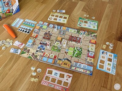 Bei einem Einkaufsbummel auf dem Spielbrett kannst du dein gespartes Geld dann ausgeben. Dabei kannst du alleine spielen oder zusammen mit bis zu drei anderen Kindern. Wer von euch ist beim Spielende der "größte Taschengeldprofi"?