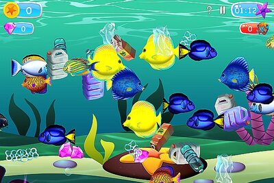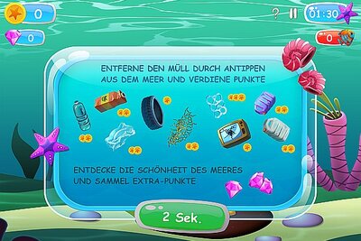 In dieser App gibt es eine wunderschöne Unterwasser-Welt, in der Fische herumschwimmen. Überall treiben aber auch Kanister und Tüten herum. Deine Aufgabe ist es, all diesen Unrat zu beseitigen.