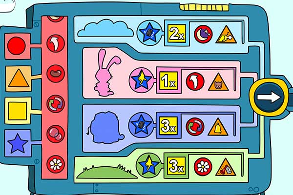 Man kann auch den rosa Hasen zum Schweben bringen oder dem blauen Elefanten Hasenohren verpassen. Dazu müssen die Figuren entweder angetippt oder das Tablet geschüttelt werden.