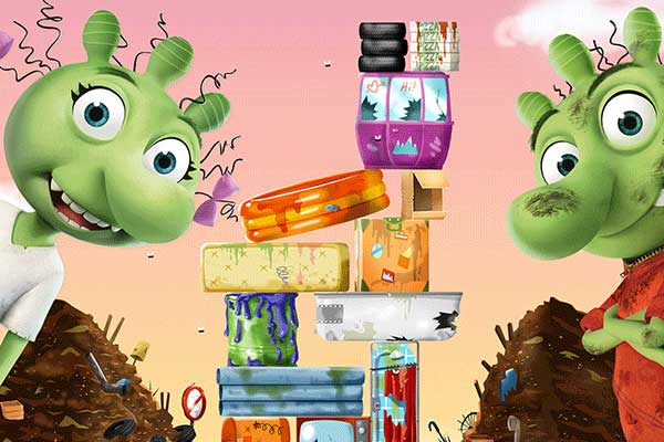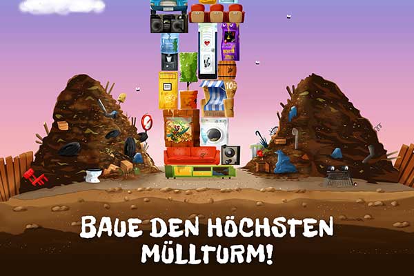 Darin muss man, aus dem herumliegenden Schrott einen Turm zu bauen. Waschmaschinen, Fernseher, Telefonzellen – man kann wirklich aus allem den Turm bauen! Und einen Höhenrekord gibt es auch zu knacken. Doch Vorsicht! Wenn der Turm zu wackelig wird, kann das gesamte Gebilde umkippen.