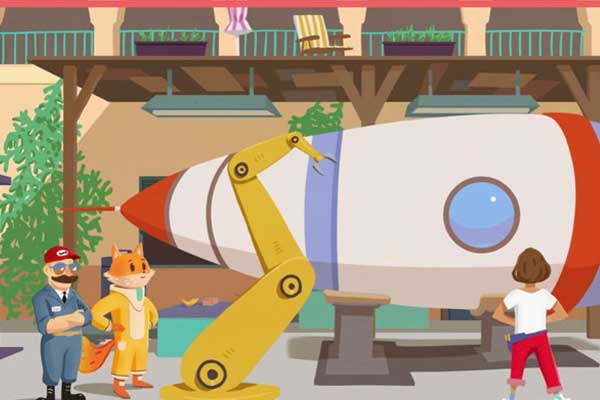 Zu entdecken gibt es einen wuseligen Markt, eine Raumschiff-Werkstatt und einen vollen Stadtpark. Auf verschiedenen Missionen lernst du, schwierige Situationen im Internet zu vermeiden.
