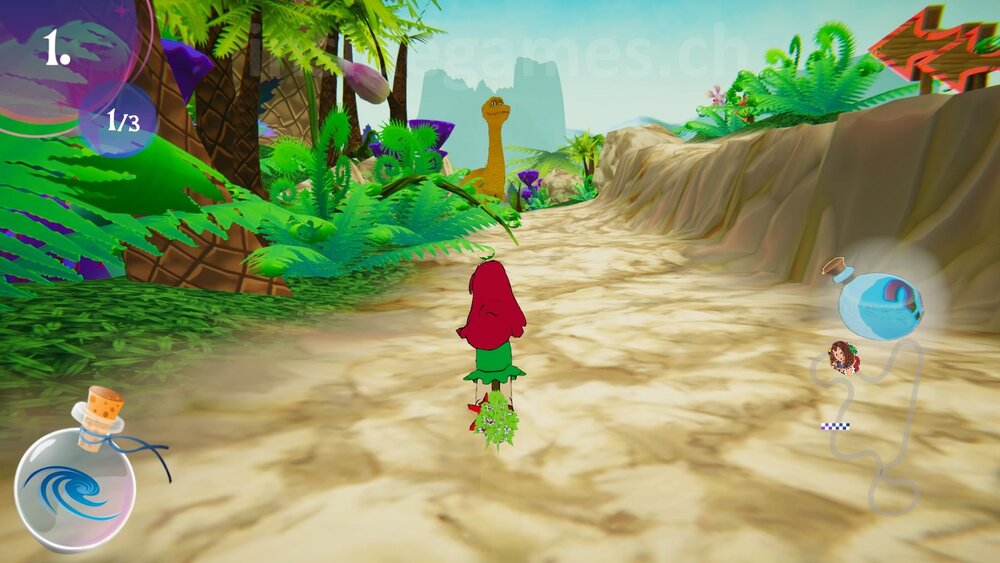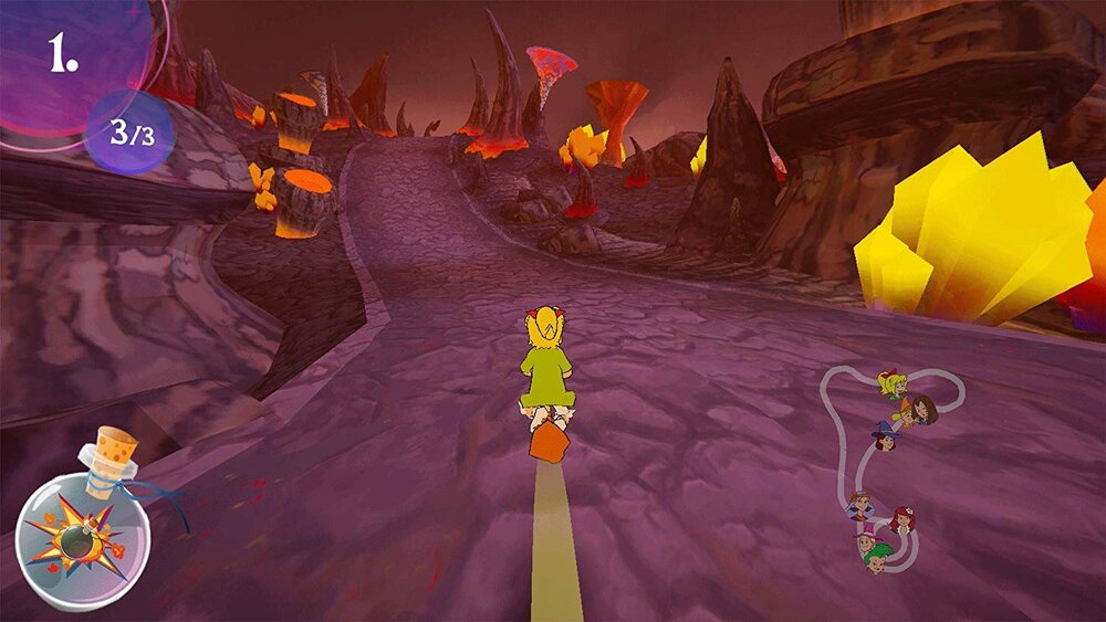 Entscheide selbst, welchen der acht Besen du fliegen möchtest. Zur Auswahl stehen auch drei Welten, die verschiedene Strecken zu bieten haben. Während des Wettrennens kannst du Hexentränke und Münzen einsammeln. Sie helfen dabei, Gegner zu behindern oder die eigenen Flugkünste zu verbessern.