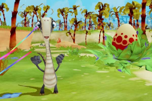 Dafür kannst du die Dinos steuern und zum Bespiel Gegenstände sammeln oder mit Fahrzeugen über Rennstrecken rasen – alleine oder mit bis zu zwei weiteren Kindern gleichzeitig.