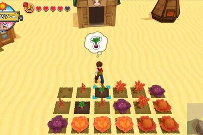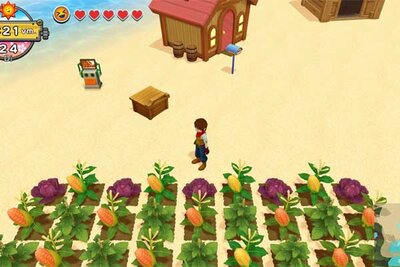 Kennt ihr schon das Spiel "Harvest Moon: Eine Welt"? Darin kann man sich um eine Farm und ihre Pflanzen und Tiere kümmern. Es wird geharkt, gesät, gedüngt, gegossen und geerntet. Über eine Kiste können dann Waren auch verkauft werden.