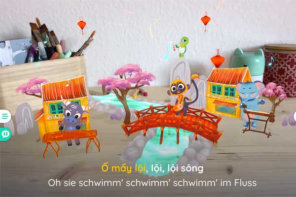 Die App enthält eine Reihe deutscher, englischer und vietnamesischer Lieder. Außerdem kannst du die Lieder zusammen mit lustigen Wesen im eigenen Wohnzimmer lernen – dank "Augmented Reality" (kurz: AR). Es können sogar witzige Fotos mit ihnen gemacht werden.