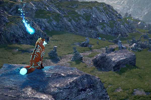 Zu entdecken gibt es spannende Rätsel: So muss etwa eine Blume gefunden und angebellt werden, damit sich ihr Zauber auf den Fuchs überträgt. Mit dieser neuen Superkraft kann der Fuchs dann Steintafeln als Schalter benutzen.