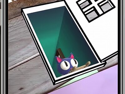 Am Anfang sitzt der Kater Hako in der Falle und du musst ihn befreien. Dafür nimmst du ein echtes Blatt Papier und malst eine Tür. Deine Zeichnung scannst du dann mit dem Tablet ein und schwupps, schon hat Hako einen rettenden Ausgang.