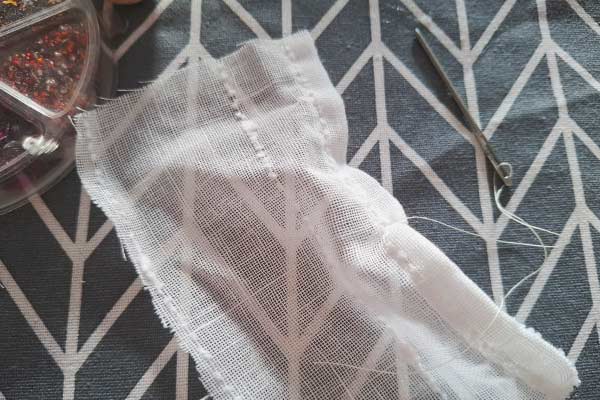 - Stück dünnen Stoff (16 cm x 8 cm), beispielsweise von einer alten Gardine