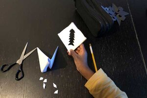 5. Für den nächsten Schritt brauchst du die Schere. Jetzt schneidest du entlang des Musters.