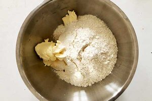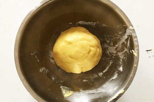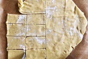 Nun musst du die Zutaten zu einem Teig kneten. Danach muss der Teig für eine Stunde in den Kühlschrank gestellt werden.