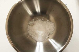 Füll 300g Mehl in die Schüssel.