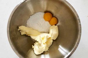 Trenn zwei Eier und gib jeweils nur das Eigelb in die Schüssel.
