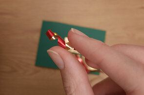 Klebt die einelnen Locken mit etwas Kleber am oberen Teil des Geschenks fest und drückt sie an.