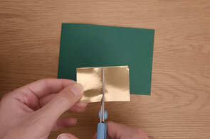 Aus dem Alupapier schneidet ihr ein passendes Rechteck aus (ca. 8 cm x 5 cm).