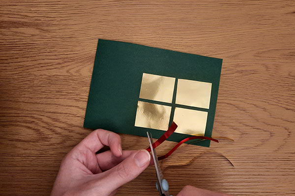 Aus dem übrigen Alupapier könnt ihr 5-6 dünne Streifen für das Kräuselband ausschneiden.